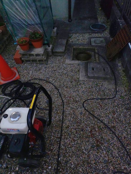 高圧洗浄で排水管の中を綺麗に洗って、詰まりの原因を洗い流す方法になります。